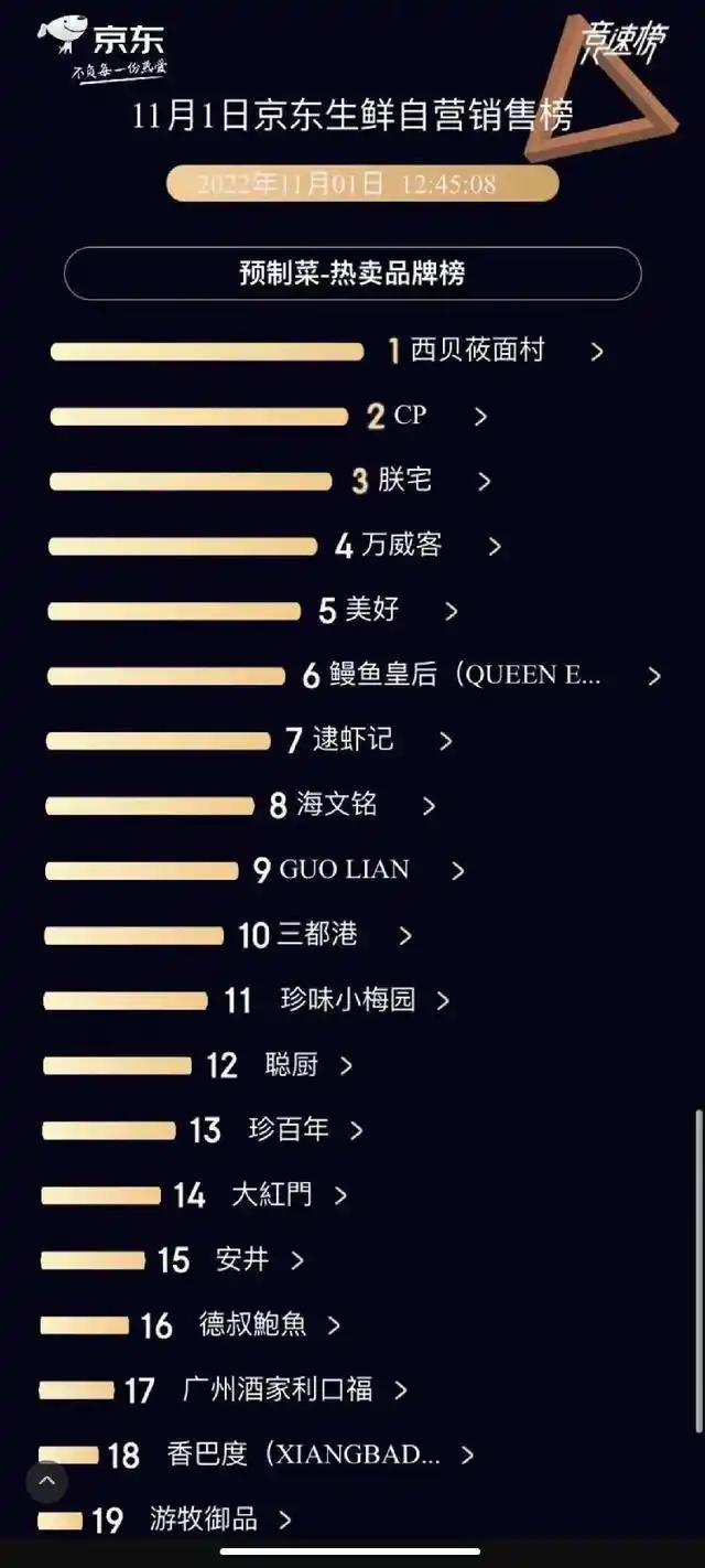 9月12日中午,极目新闻记者注意到,在2022年天猫生鲜预制菜预售排行榜与京东预制菜-热卖品牌榜上,西贝双双名列第一。据报道,西贝在这两个平台上已连续四年霸榜。